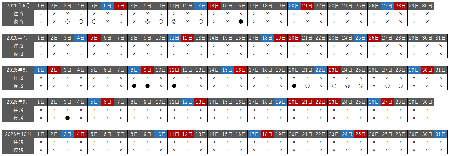 往路・復路それぞれで、空席状況を以下の種類で分けています。