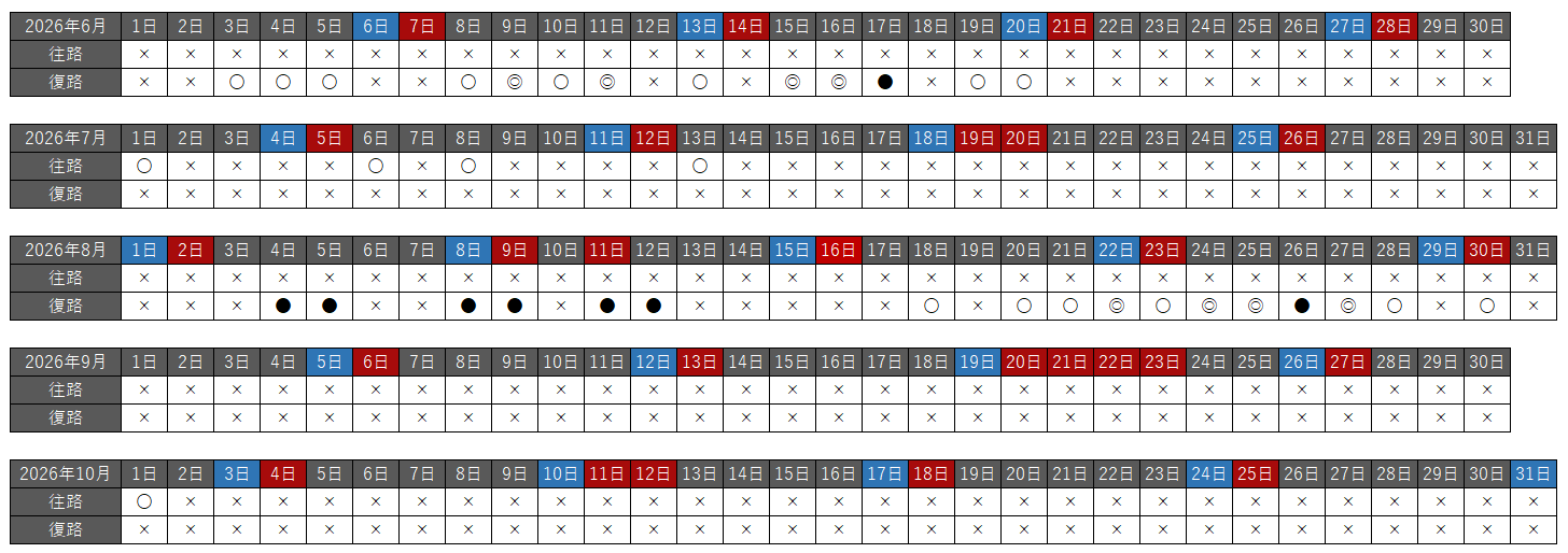 往路・復路それぞれで、空席状況を以下の種類で分けています。