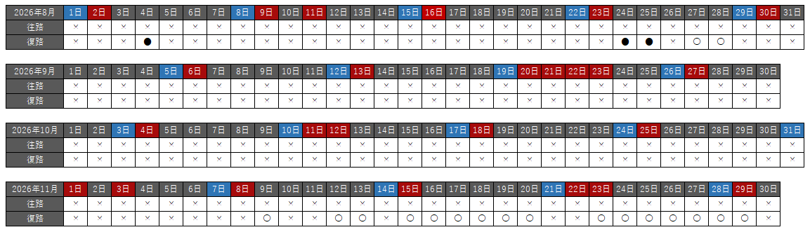 往路・復路それぞれで、空席状況を以下の種類で分けています。