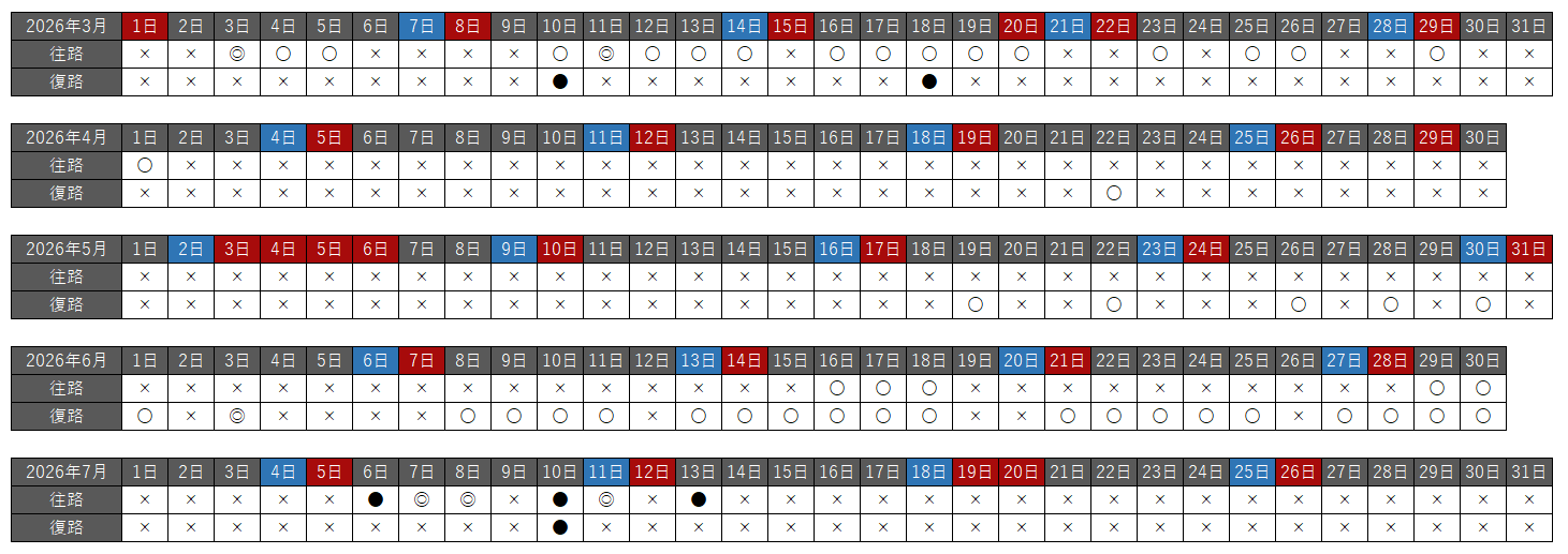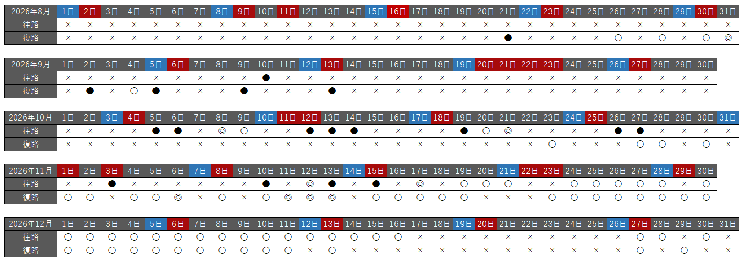 往路・復路それぞれで、空席状況を以下の種類で分けています。