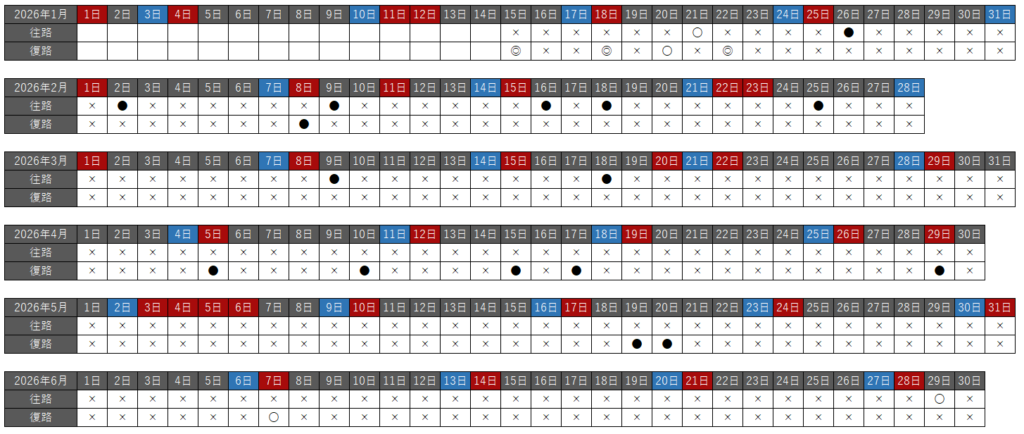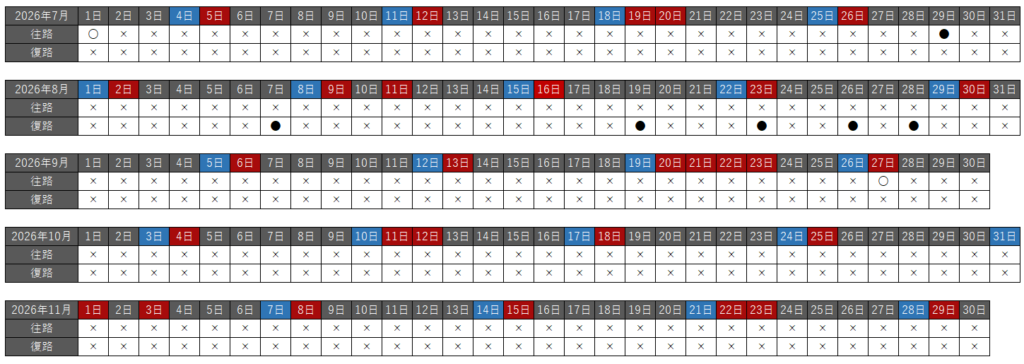 往路・復路それぞれで、空席状況を以下の種類で分けています。