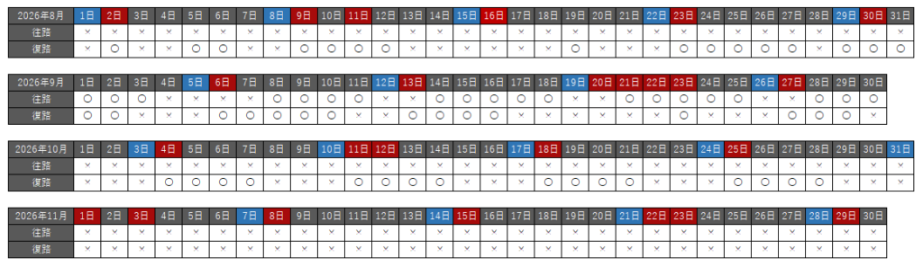 往路・復路それぞれで、空席状況を以下の種類で分けています。