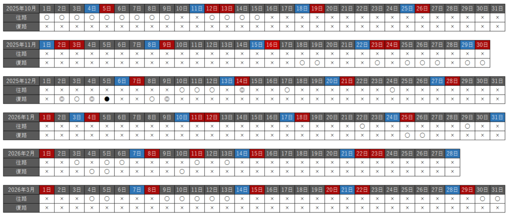 往路・復路それぞれで、空席状況を以下の種類で分けています。