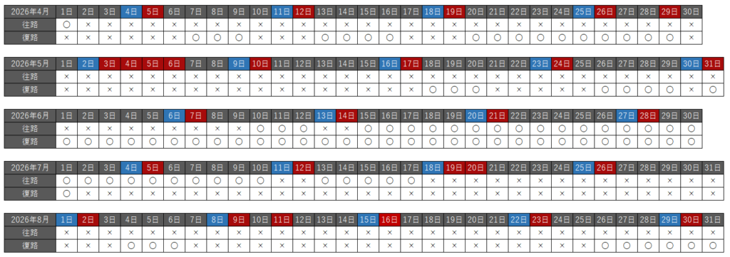 といっても、往復できるような日程はあまりなく、なぜか来年6月だけは異常に空席があるという、変な状況ですが。
