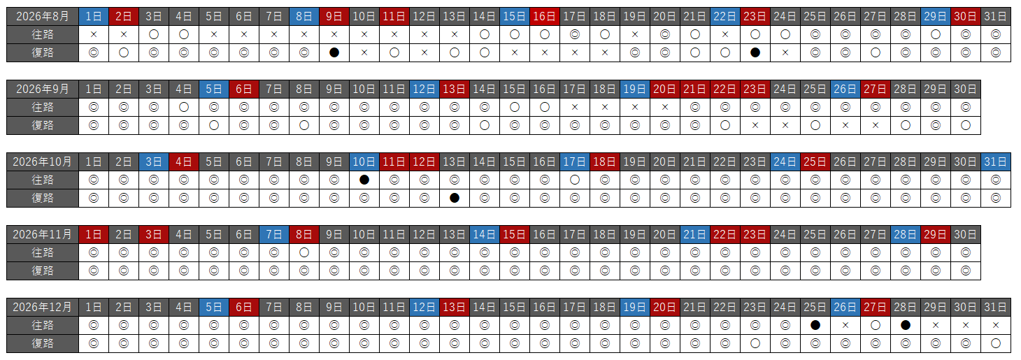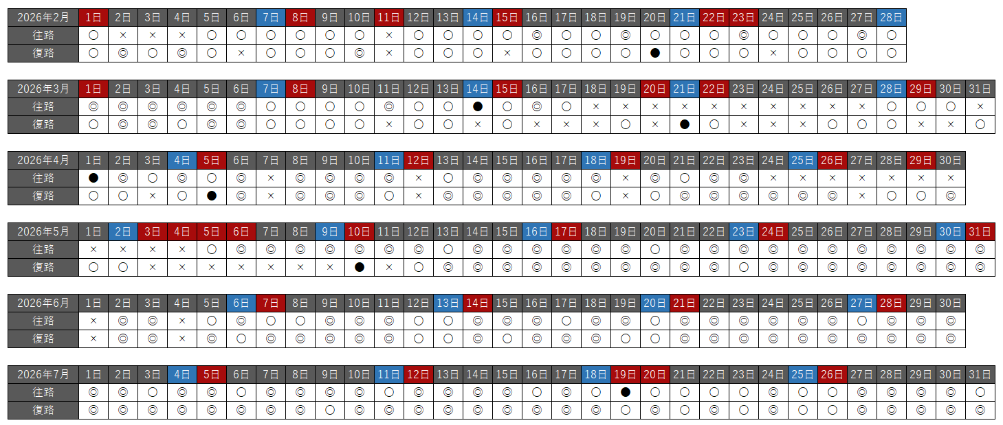 往路・復路それぞれで、空席状況を以下の種類で分けています。