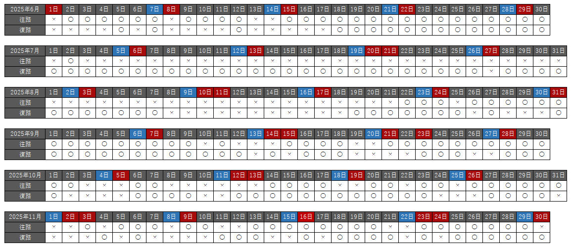 往路・復路それぞれで、空席状況を以下の種類で分けています。