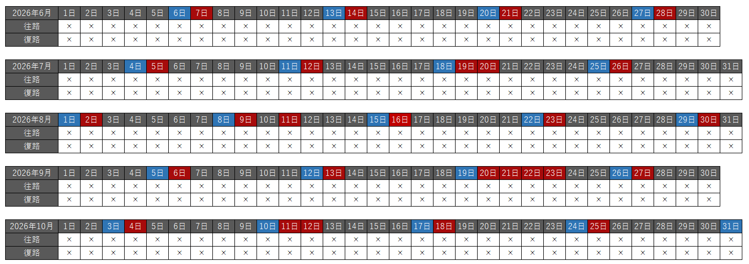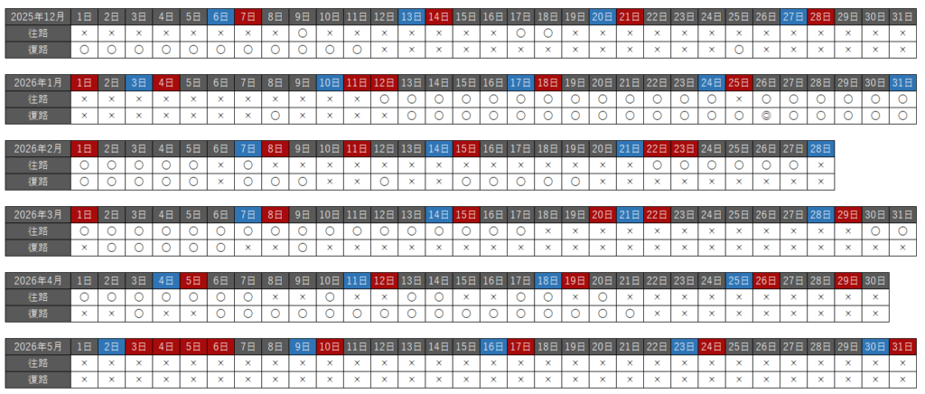 往路・復路それぞれで、空席状況を以下の種類で分けています。
