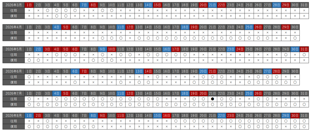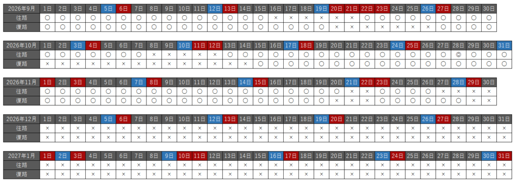 往路・復路それぞれで、空席状況を以下の種類で分けています。