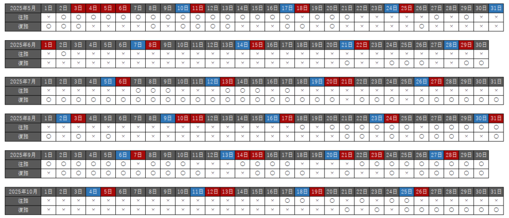 往路・復路それぞれで、空席状況を以下の種類で分けています。