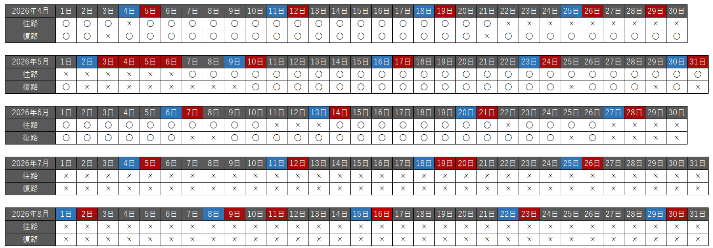 往路・復路それぞれで、空席状況を以下の種類で分けています。