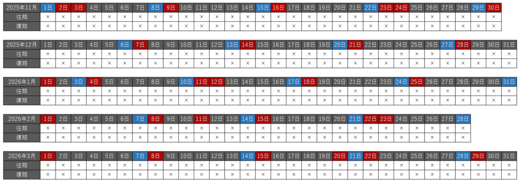 往路・復路それぞれで、空席状況を以下の種類で分けています。