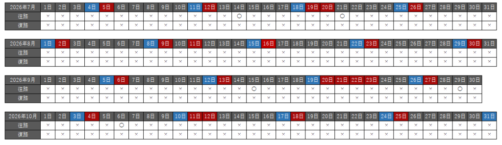 往路・復路それぞれで、空席状況を以下の種類で分けています。