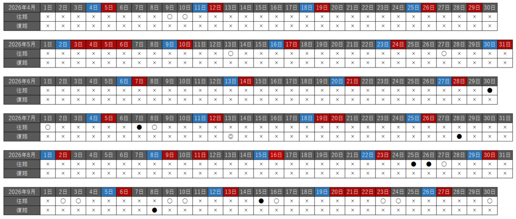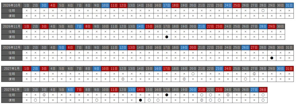 往路・復路それぞれで、空席状況を以下の種類で分けています。