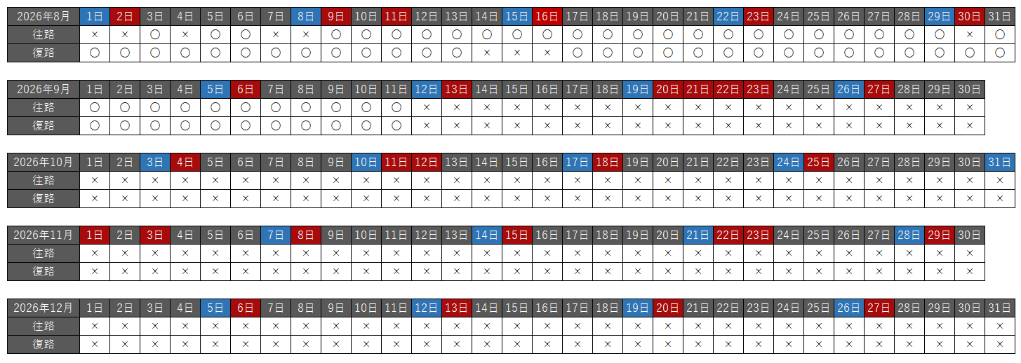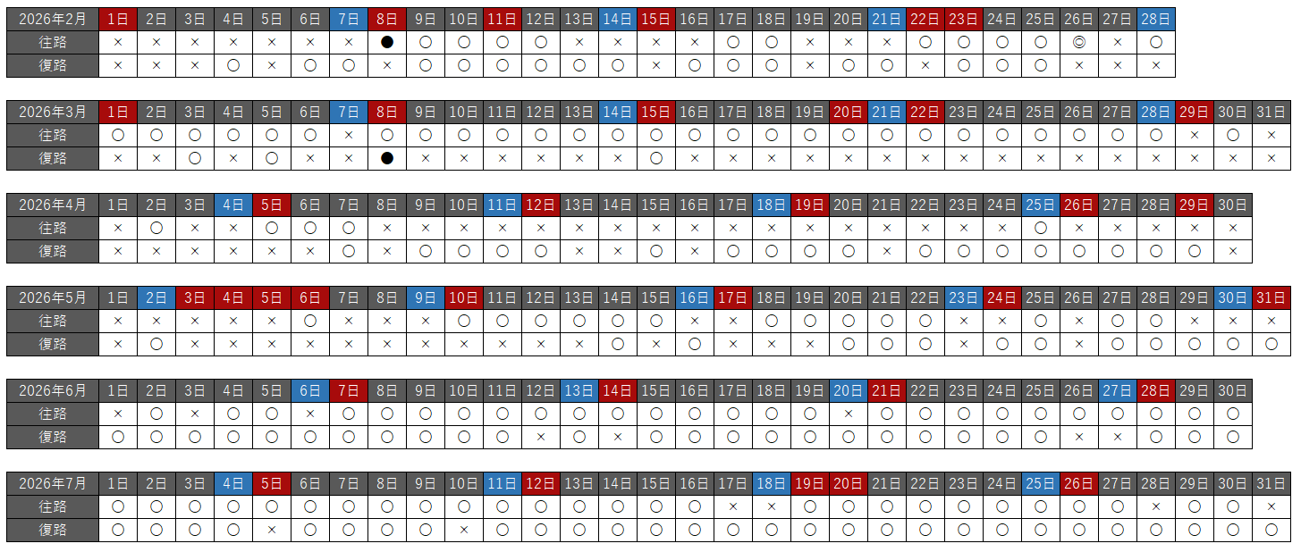 往路・復路それぞれで、空席状況を以下の種類で分けています。