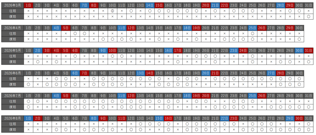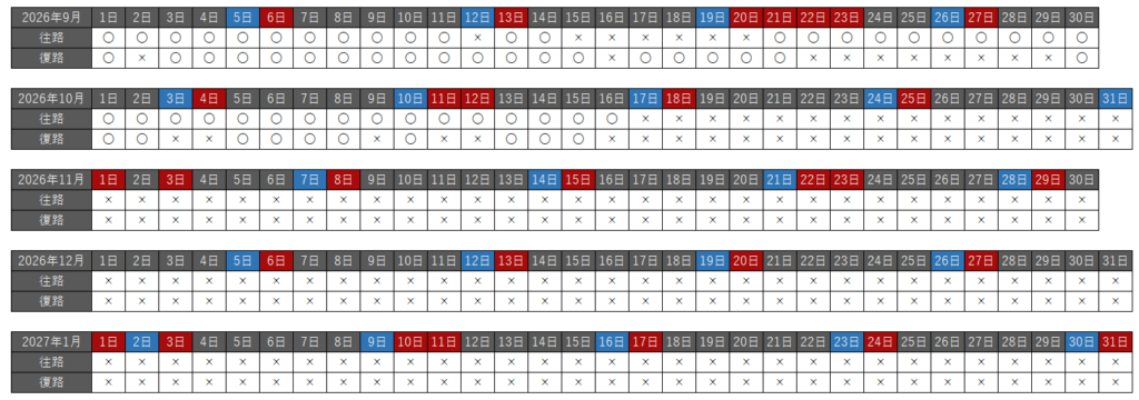 往路・復路それぞれで、空席状況を以下の種類で分けています。