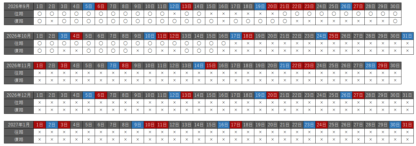 往路・復路それぞれで、空席状況を以下の種類で分けています。