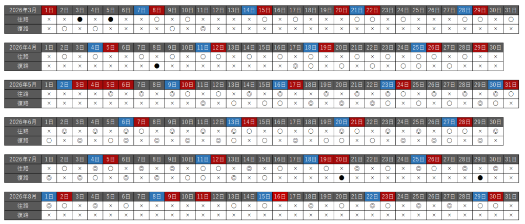往路・復路それぞれで、空席状況を以下の種類で分けています。