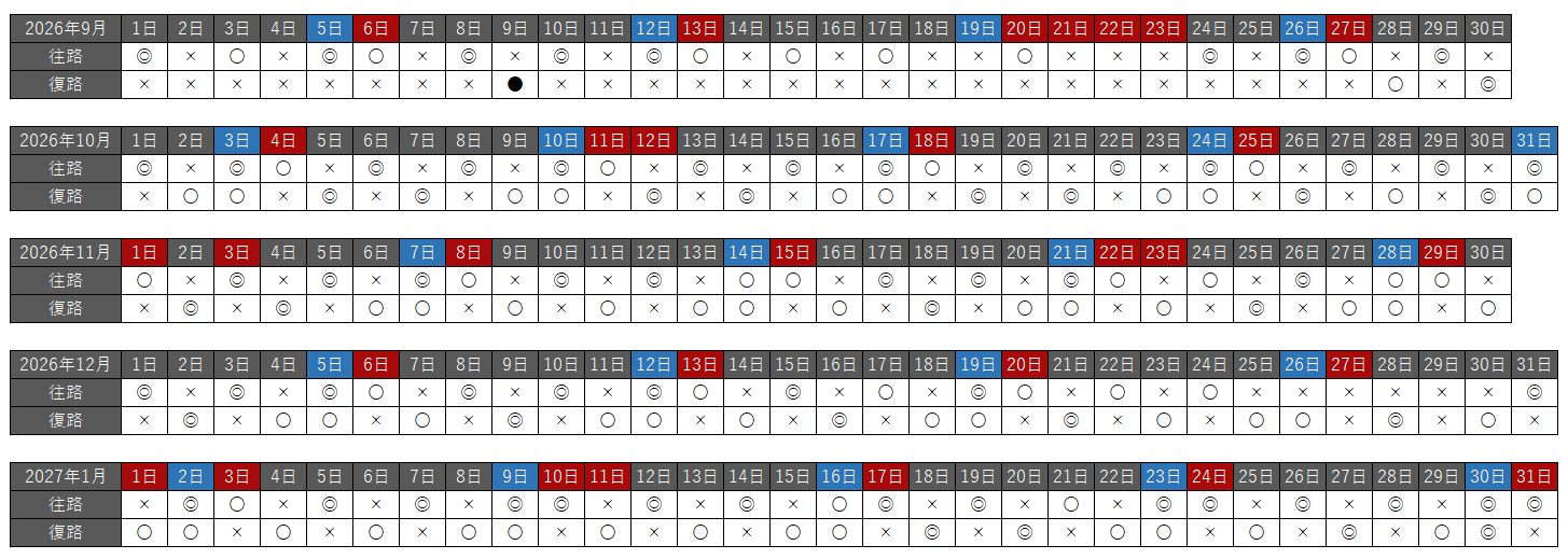 往路・復路それぞれで、空席状況を以下の種類で分けています。